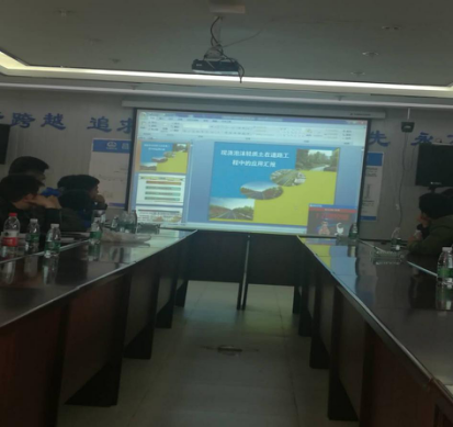 现场听取先容昌九快速路工程概况以及现在的施工手艺特点、难点及希望情形;现场寓目了从泡沫混土壤施工工艺、大型桥梁的梁片、张拉、运输、架梁等方面的效果视频及深入详尽的解说,工程的体量和手艺难度让人震撼 。各人在认真寓目视频后,时时地提出问题讨教,项目总监都逐一举行相识答 。